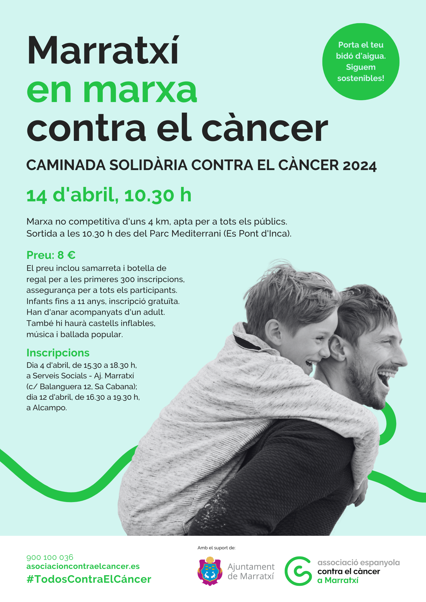 Inscripcions: Dia 4 d'abril, de 15.30 a 18.30 h, a Serveis Socials - Aj. Marratxí (c/ Balanguera, 12, Sa Cabana); dia 12 d'abril, de 16.30 a 19.30 h, a Alcampo.