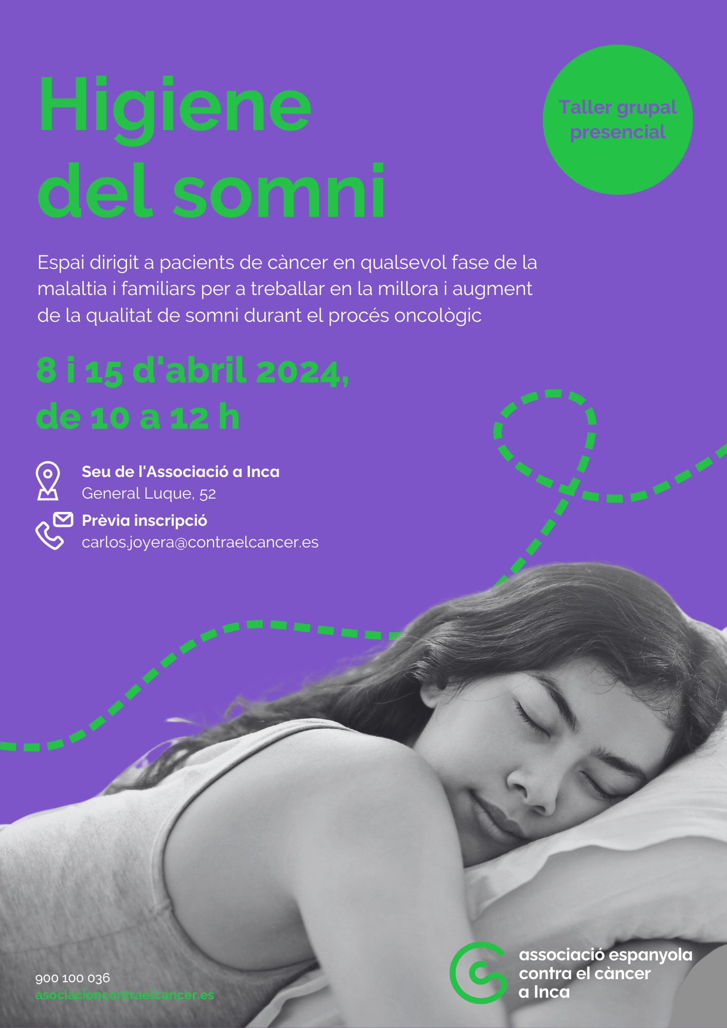 Taller grupal presencial dirigit a pacients de càncer en qualsevol fase de la malaltia i familiars per a treballar en la millora i augment de la qualitat de somni durant el procés oncològic.