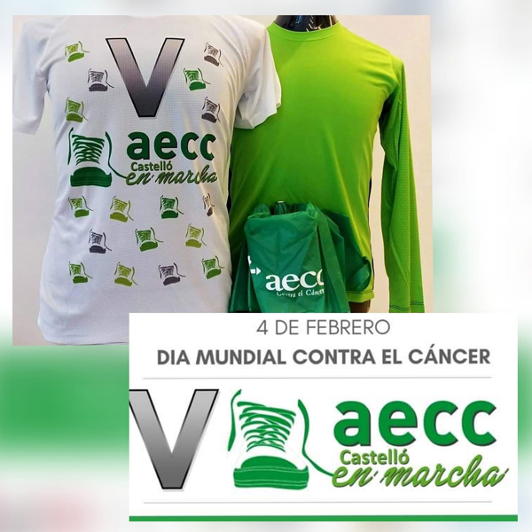 Como ya conocéis el próximo día 4 de febrero es el Día Mundial Contra el Cáncer, y con ello la junta provincial organiza la AECC Castelló en marcha, evidentemente no podremos hacerla presencial, pero si vamos a conmemorar la fecha con un Pack solidario que consiste de camiseta corporativa +camiseta de regalo entrenar + regalo AECC +DORSAL por 10 euros,