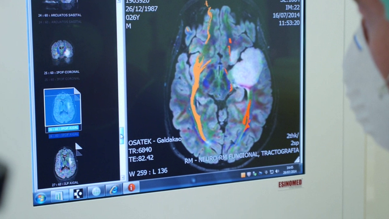 Este proyecto desarrollado por el centro vasco investiga los gliomas de bajo grado, tumores que si no se atajan a tiempo tienen una alta probabilidad de convertirse tumores malignos. Ante este tipo de patologías, el procedimiento estándar que se emplea para intervenir al paciente es la cirugía llamada de ‘paciente despierto’. Mediante esta cirugía, se le despierta en mitad de la operación para que realice una serie de tareas mientras que el cirujano está estimulando distintas áreas del cerebro alrededor del tumor para ver si cuando los estimula, el paciente las realiza adecuadamente. Estas tareas suelen consistir en el reconocimiento y denominación de dibujos de objetos o acciones. Así, el neurocirujano puede comprobar en ese momento que ese tejido intervenido se está viendo afectado y decidir no extraerlo con el fin de evitar secuelas cognitivas postoperatorias en el paciente oncológico.