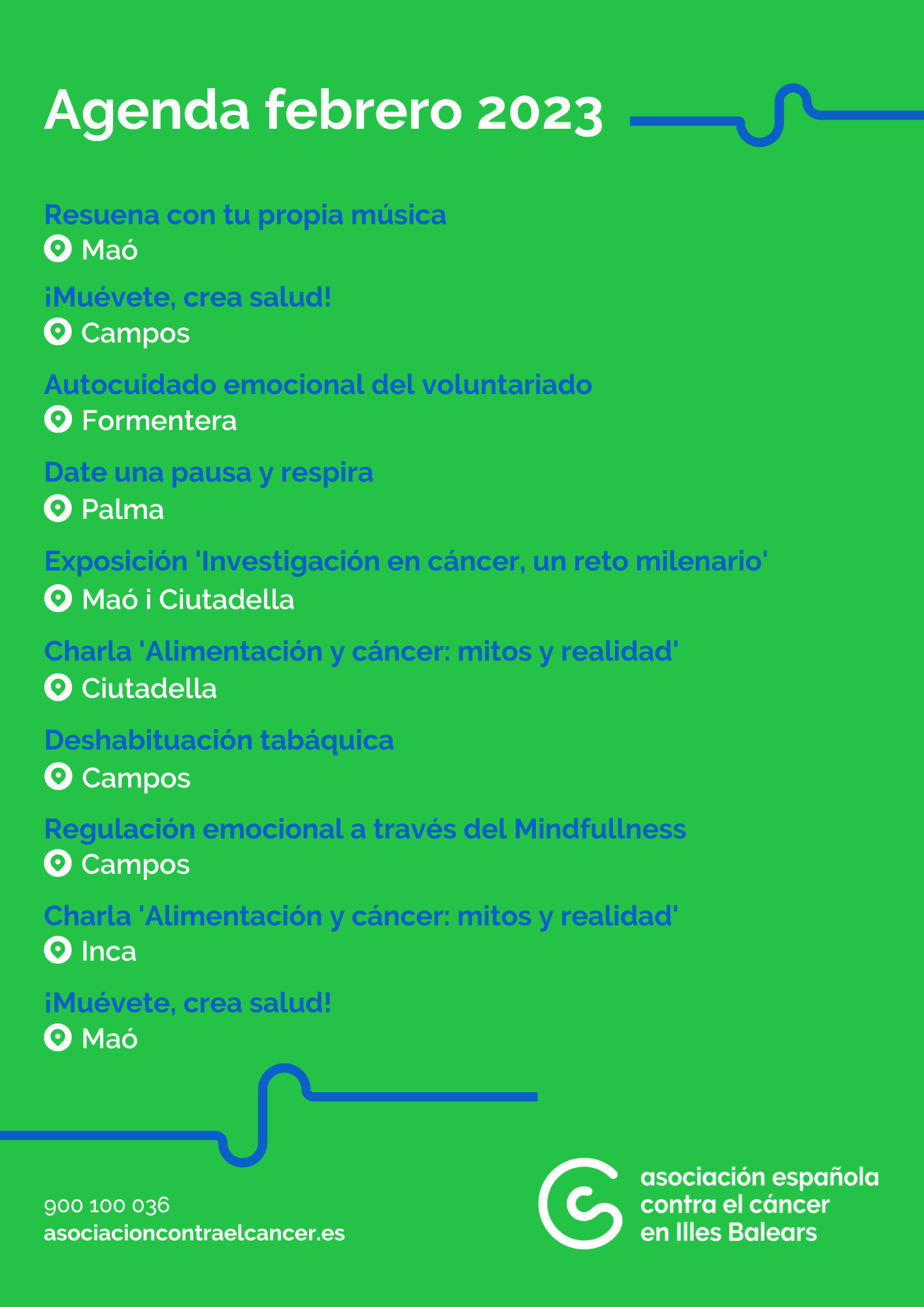 Agenda febrero 2023 de la Asociación Española Contra el Cáncer en Illes Balears