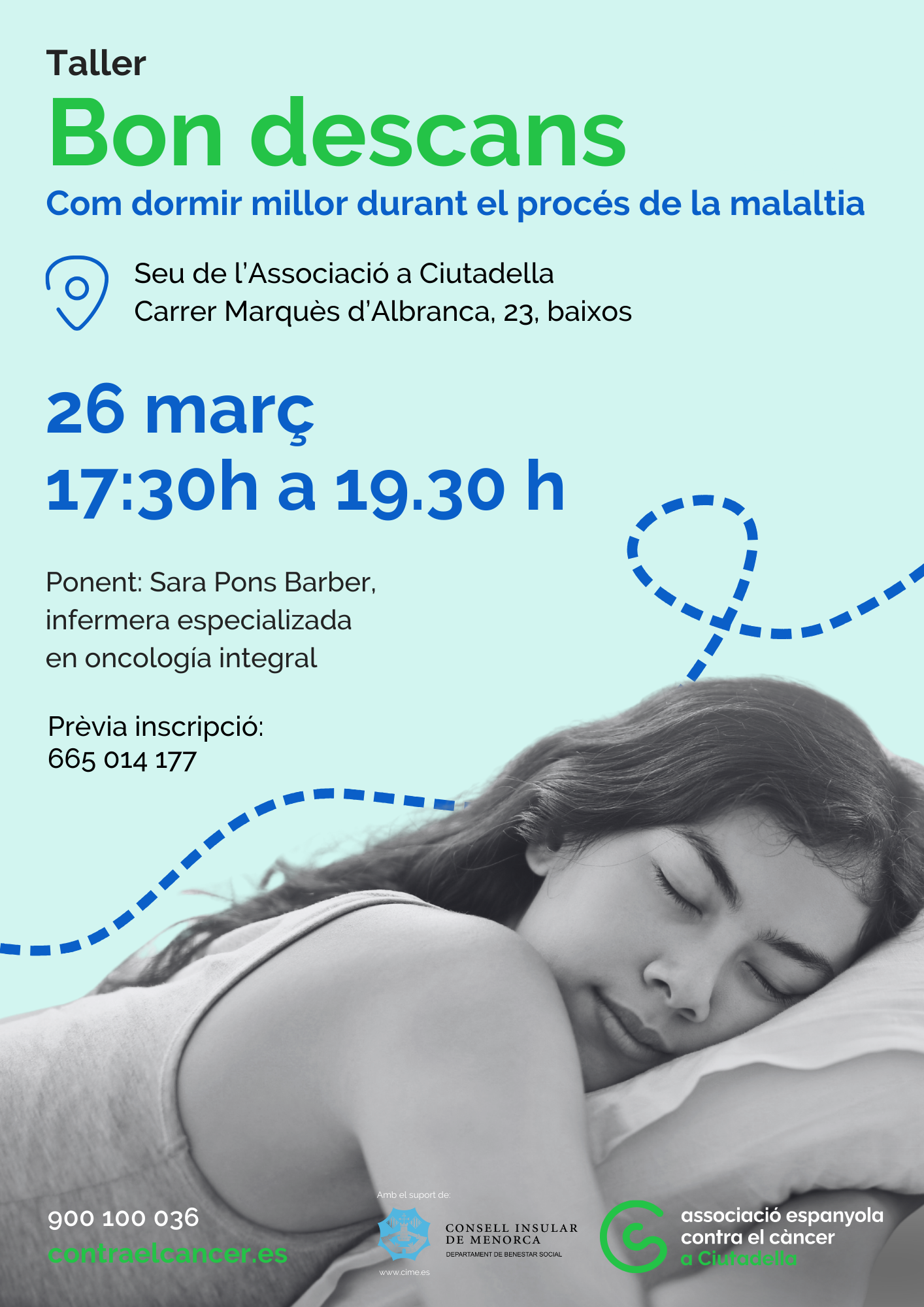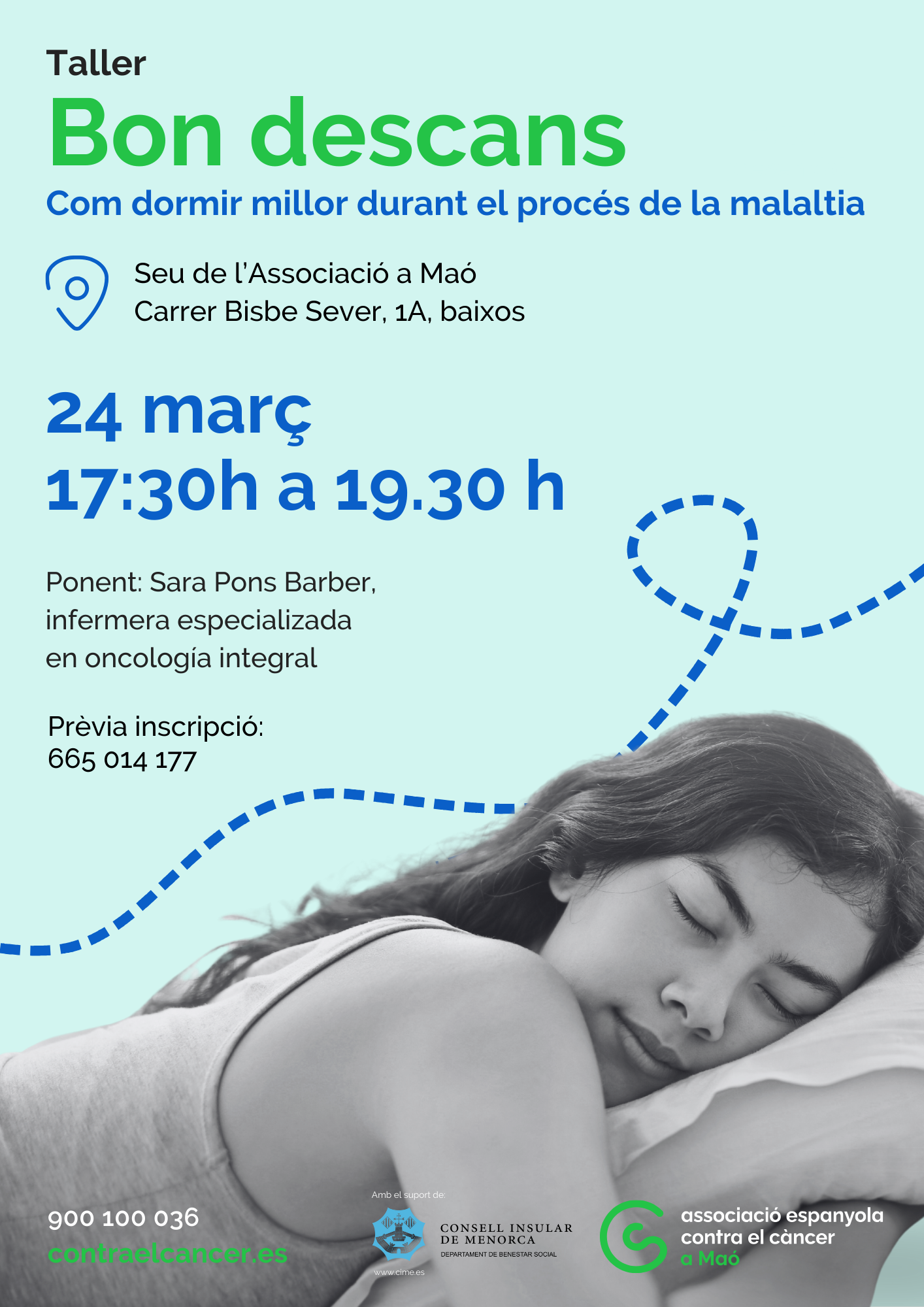 Cómo dormir mejor durante el proceso de la enfermedad será el tema a tratar en este taller. La ponente será Sara Pons Barber, enfermera especializada en oncología integral.