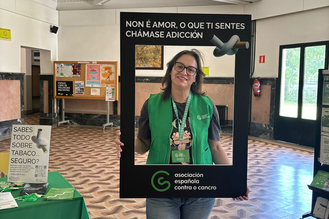 Iria López, enfermera y voluntaria de la Junta Local de Pontedeume, aprovechó su experiencia profesional para acercarse a la juventud en los colegios. En algunos casos, tuvo oportunidad de hablar con adolescentes “Fumar les hace creer que aparentan ser más mayores, pero al final les engancha y les tiene atados. Decirles esto hace que se lo replanteen”, comentó.