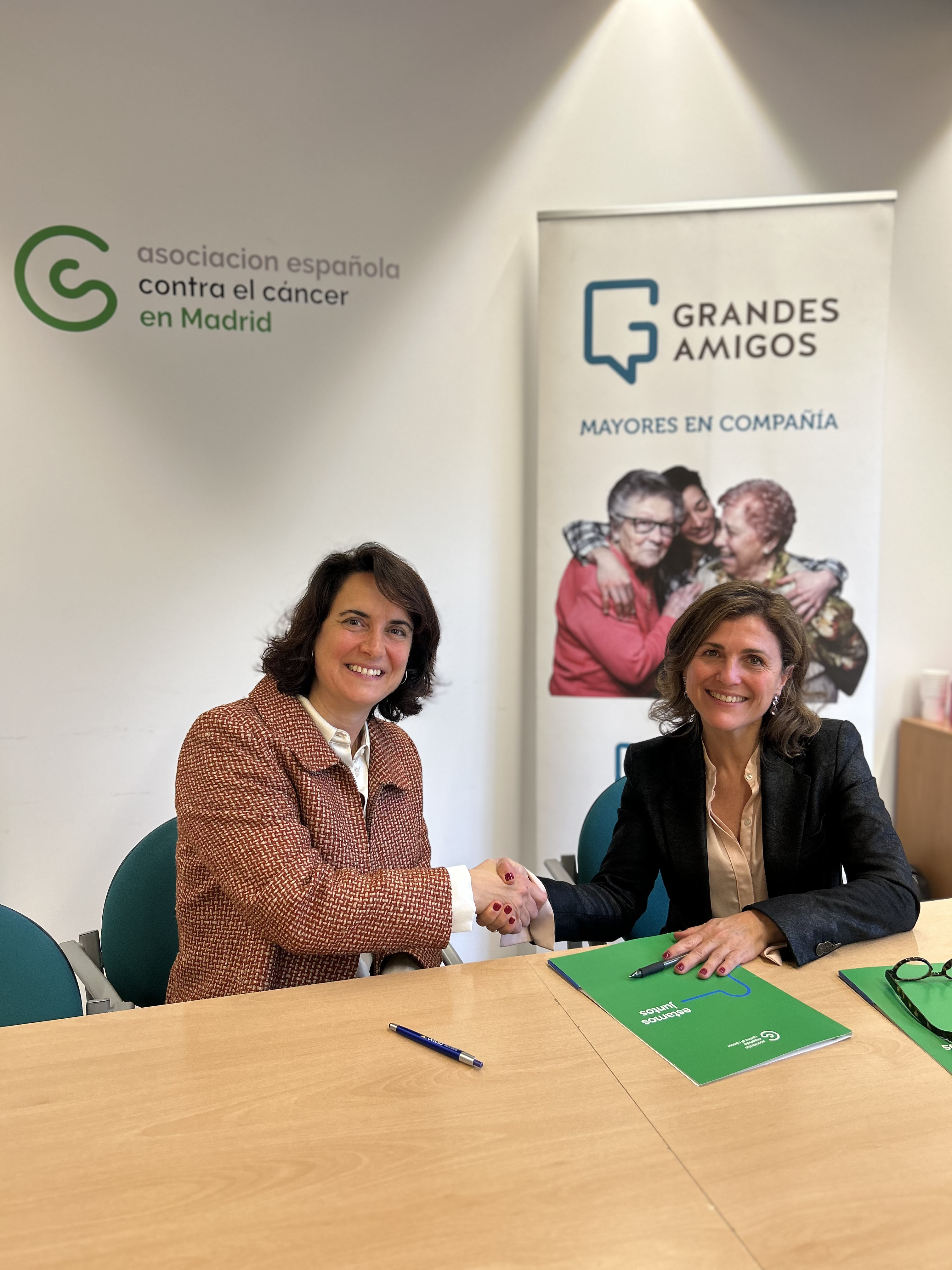 La Asociación Española Contra el Cáncer en Madrid y la Fundación Grandes Amigos han suscrito un convenio marco de colaboración, con el objetivo de mejorar la calidad de vida de las personas mayores en riesgo o situación de soledad y afectadas por cáncer.