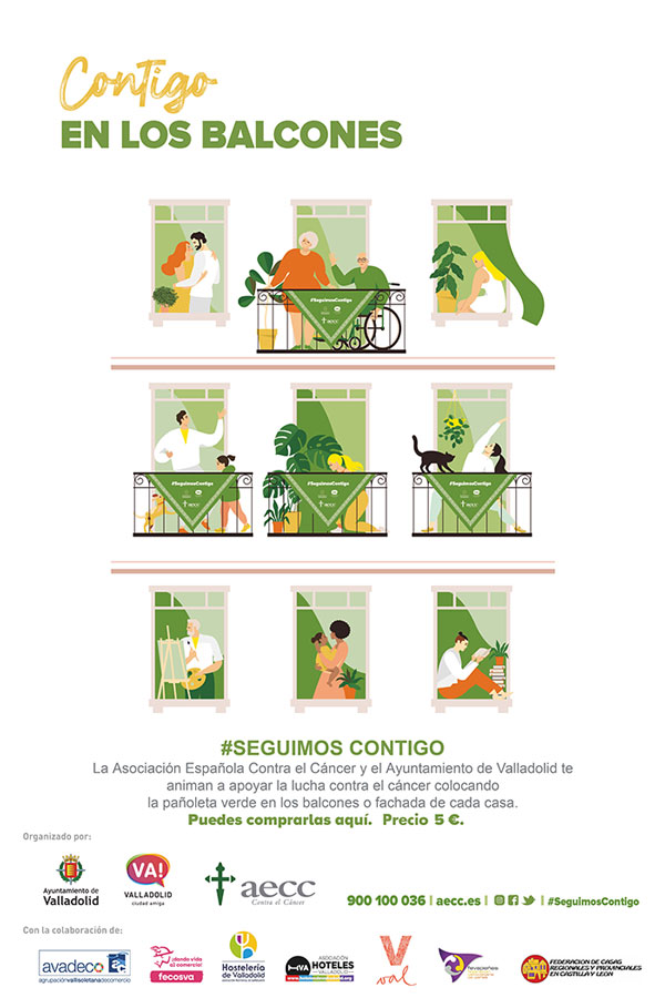 La iniciativa pone a la venta pañoletas verdes a 5 euros la unidad en los establecimientos y entidades colaboradores para colgar en las fachadas y balcones de las casas. El objetivo es visibilizar la emergencia en cáncer y recaudar fondos para seguir avanzando en la investigación oncológica, cuya partida presupuestaria en AECC Valladolid asciende a 600.000 euros en 2020.