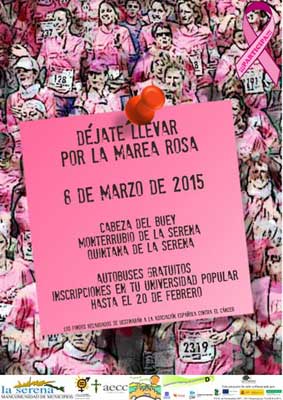 Tras la celebración el pasado 8 de marzo de la Carrera Solidaria "Déjate llevar por la marea rosa" a beneficio de la Asociación Española Contra el Cáncer, organizada por la Mancomunidad de Municipios de la Serena, el Presidente D. Martín Caballero Horrillo nos ha hecho entrega de un talón con el importe recaudado ascendiendo a 5.582,56€.