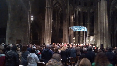 Gospelians de Girona va actuar el passat 18 de desembre a la Catedral de Girona davant gairebé 500 persones en un concert benèfic organitzat per l’AECC-Catalunya contra el Càncer de Girona. El cor, dirigit per Karol Green, va interpretar durant dues hores un repertori molt variat que incloïa des de temes populars afroamericans o religiosos sud-americans fins a Lluís Llach i Leonard Cohen.