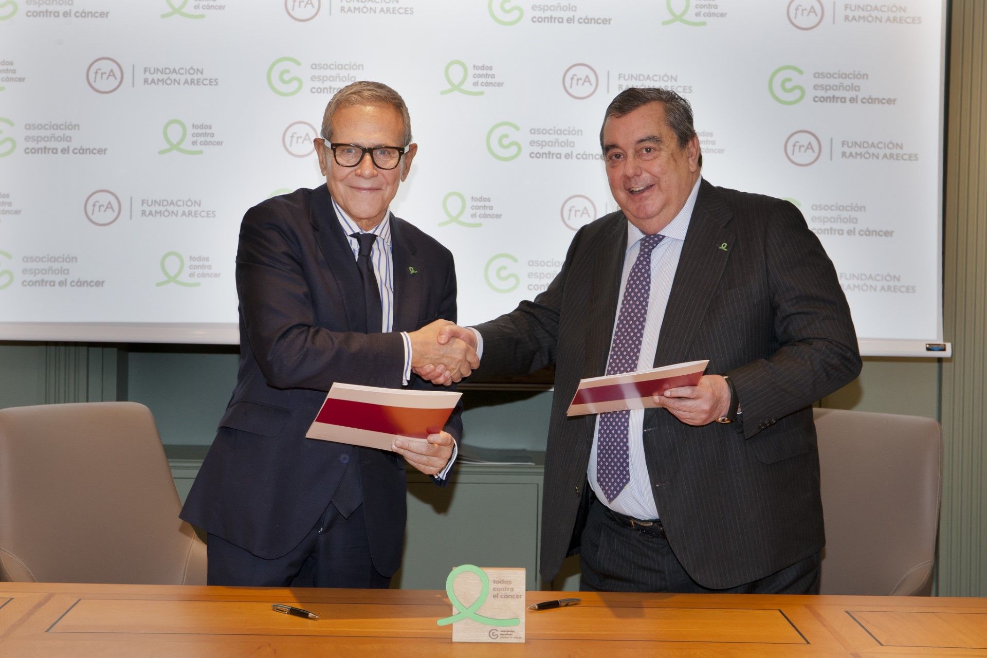 La Fundación Ramón Areces ha firmado un acuerdo de adhesión a ‘Todos Contra el Cáncer’ con la Asociación Española Contra el Cáncer como parte de su compromiso con la lucha contra esta enfermedad y para colaborar en la difusión de la iniciativa que tiene como reto superar el 70% de supervivencia en 2030. ‘Todos Contra el Cáncer’ busca la creación de un movimiento social que involucre a entidades científicas y sociales, empresas, administraciones públicas, partidos políticos y la población general con el objetivo de mejorar cuatro áreas: divulgación, atención, prevención y tratamiento.