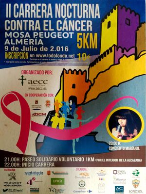 La II Carrera Nocturna contra el Cáncer Mosa Peugeot Almería, organizada por AECC JP Almería en cooperación con Diputación de Almería, Ayuntamiento de Almería y DCM Promotions, tendrá lugar el próximo 9 de julio.