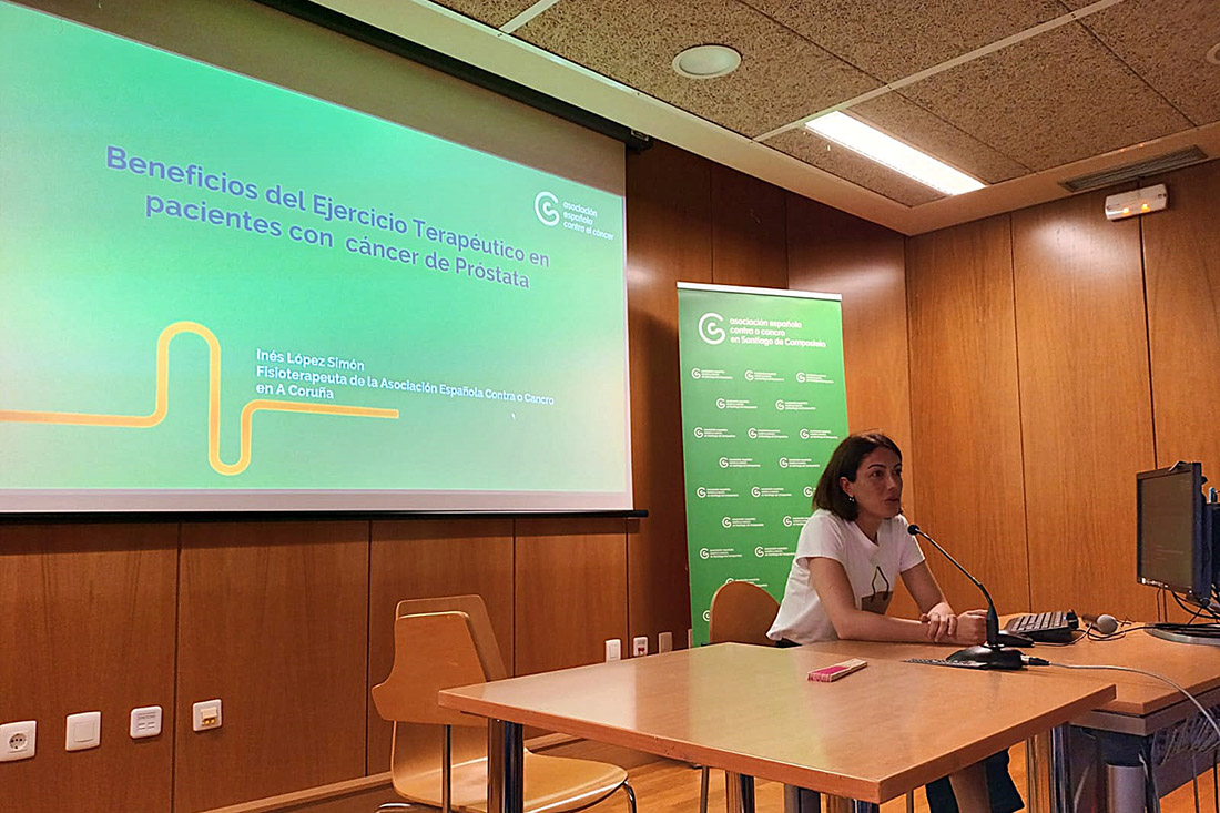 La sesión consistió en una mesa redonda en la que participaron diversas profesionales para brindar sus conocimientos sobre la materia, entre las que se encontraban la doctora Ana Carballo, jefa del Servicio de Oncología Radioterápica del hospital compostelano. La facultativa explicó las características de este tipo de cáncer, su tratamiento y la importancia de la prevención y de la detección precoz. A continuación, Inés López, fisioterapeuta de la Asociación, abordó los beneficios del ejercicio físico para los pacientes de esta enfermedad. Para finalizar, Tamara Prieto, psicóloga de la Asociación, enseñó técnicas de relajación para afrontar el proceso oncológico.