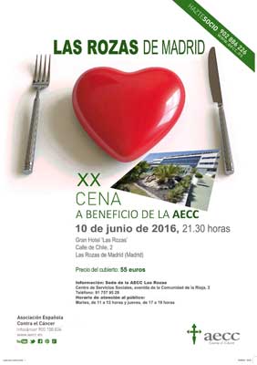 Pasadas las nueve y media de la noche del viernes 10 de junio, el Gran Hotel Las Rozas acogió la vigésima edición de la Cena a beneficio de la AECC de Las Rozas de Madrid, en la que Mercedes Muro, presidenta de la asociación en la localidad, hizo, como cada año, de anfitriona del encuentro, dando la bienvenida a todos los asistentes, que pudieron conocer la AECC a través de la proyección inicial de un vídeo corporativo titulado ‘Color Esperanza’.