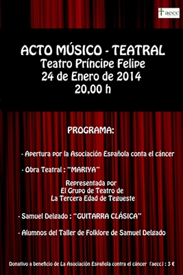 La aecc de Santa Cruz Tenerife invitó al acto organizado por un grupo de colaboradores del municipio de Tegueste, que tuvo lugar el viernes 24 de enero a las 20:00 horas en el Teatro Príncipe Felipe de esta localidad.
