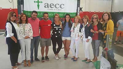 El concejal de Gobernanza, Dinamización Económica y Deportes, Óscar Blanco, y la presidenta de la AECC de Aranjuez, Meli González, acompañada por varias voluntarias de su Junta local, también asistieron al recinto deportivo, situado al suroeste del municipio ribereño y que ha cumplido cuatro años en agosto pasado, con el objetivo de apoyar la causa.