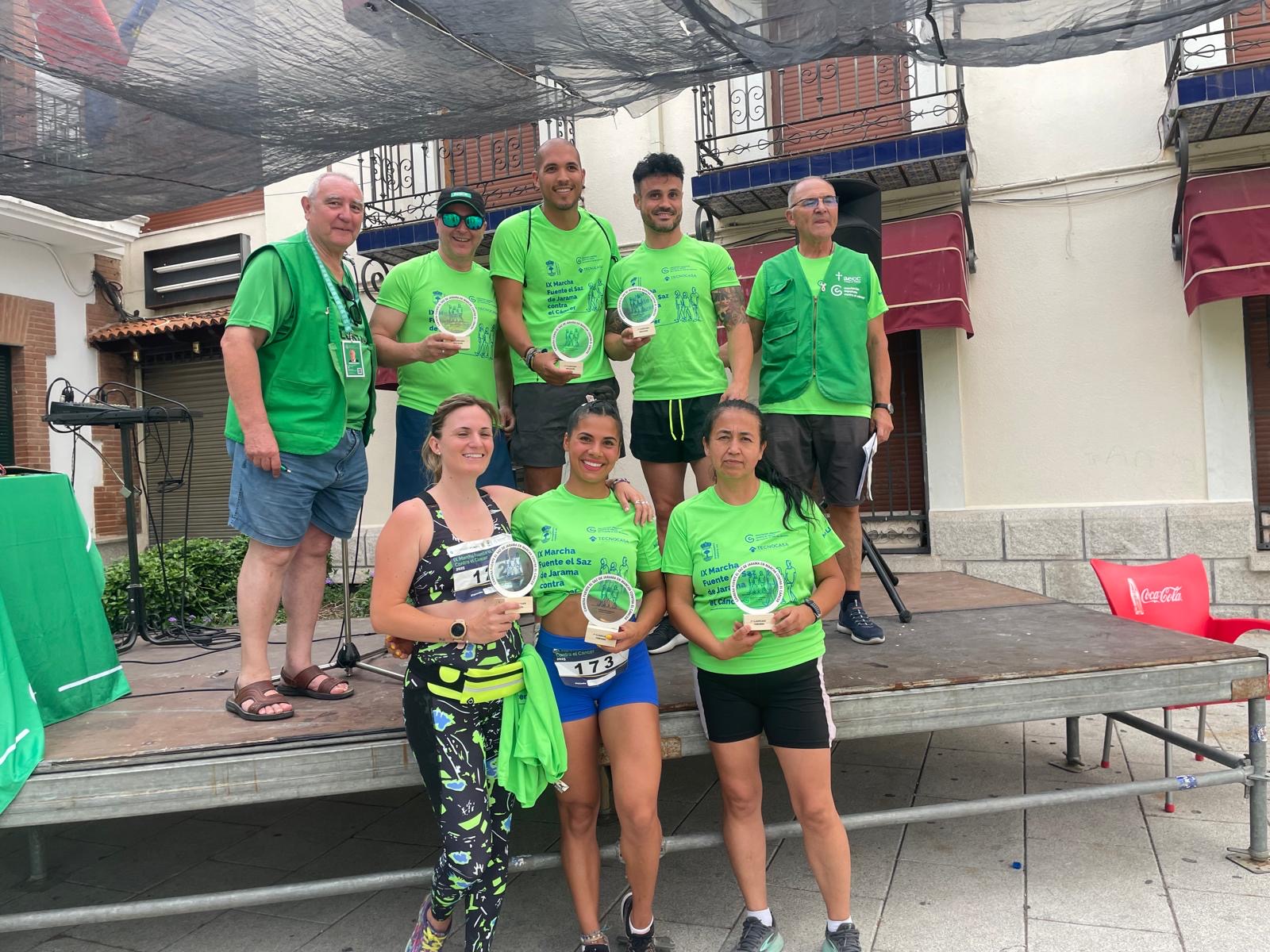 Todos los participantes recibieron una mochila y una camiseta verde conmemorativa de esta nueva edición, que acabó con una clase magistral de zumba en la plaza. Por su parte, Solán de Cabras aportó el avituallamiento líquido a los corredores y caminantes, enfriada previamente en varias neveras por el voluntariado de la Asociación.