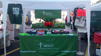 L’AECC-Catalunya contra el Càncer de Girona ha participat en el Sant Jordi d’enguany amb una parada de venda solidària a la Plaça Catalunya de Girona. A la parada s’han venut roses fetes amb càpsules de cafè i paper perfumat que havien elaborat voluntaris de l’associació en un taller previ. Així com treballs manuals que alumnes de diferents escoles de la ciutat han preparat durant el curs escolar en el programa d’actes solidaris a les escoles “Ho fem per tu”. També s’han muntat parades a altres poblacions com Sils, Torroella de Montgrí, Blanes, Caldes de Malavella, Sant Feliu de Guíxols i l’Escala.