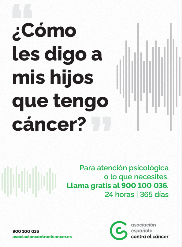 La Asociación Española contra el Cáncer presenta una nueva campaña de comunicación para dar a conocer su teléfono gratuito de atención a pacientes de cáncer y sus familias, el 900 100 036. Esta prestación, que responde las 24h del día durante los 365 días del año, es el único en Europa y el segundo en el mundo que ofrece esta disponibilidad para las personas con cáncer y sus familiares.