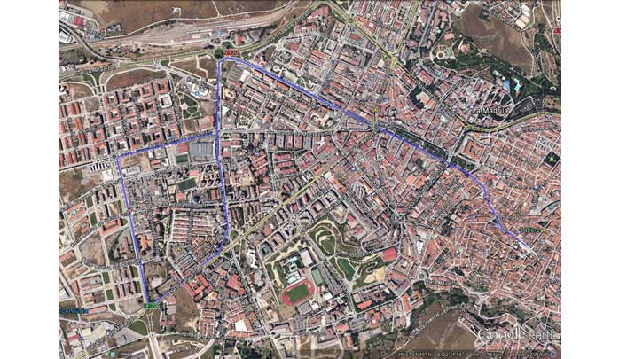 Salida desde la plaza de Santa María - Arco de la estrella - Plaza mayor - Gran vía – San Juan – San Pedro – San Pedro – San Antón – Avda. España – Plaza América – Avda. Alemania – Avda. Hispanidad – Avda. Cervantes – Avda. Dulcinea – Avda. Pierre de Coubertin – Pabellón Multiusos.