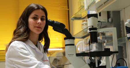 La investigadora Carolina Méndez, que cuenta con una Ayuda Predoctoral de la Asociación Española Contra el Cáncer (AECC) en León, forma parte de un grupo de investigación que ha estudiado las estrategias de adaptación del cáncer de hígado para resistir al tratamiento con un fármaco llamado Sorafenib.