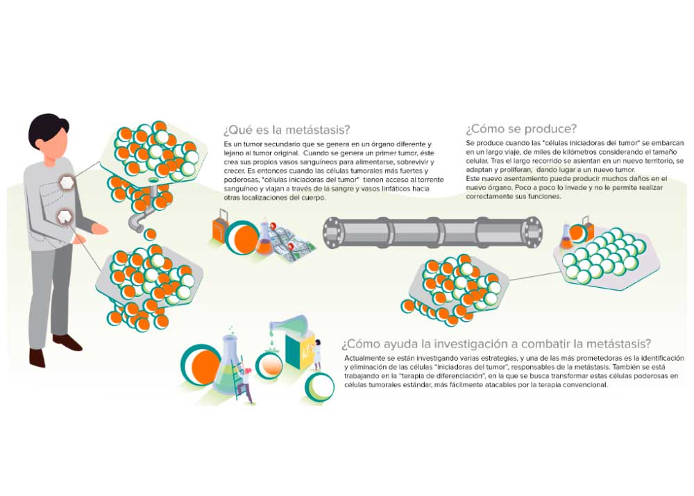 Por último, la enfermedad se disemina fuera de su lugar de origen, apareciendo lesiones tumorales a distancia denominadas metástasis. Es la etapa de invasión a distancia. La sintomatología que presenta el paciente suele ser compleja. Depende del tipo de tumor, de la localización y extensión de las metástasis.