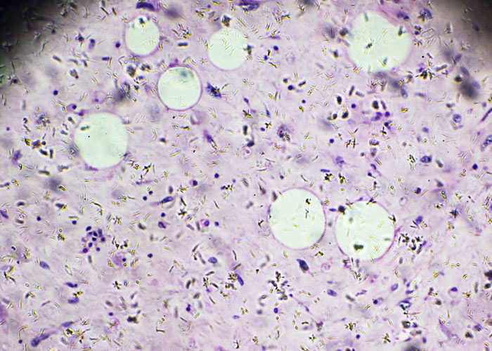 El liposarcoma bien diferenciado se parece mucho al tejido adiposo (graso) maduro, pero al microscopio muestra unos tabiques fibrosos con atipia nuclear (núcleos celulares anómalos) variable y agrandamiento.
