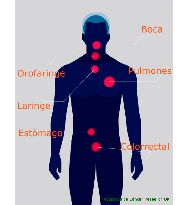 Existen alimentos directamente relacionados con el incremento de riesgo de cáncer como el caso de la carne procesada (cualquier tipo de carne que ha sido transformada con salazón, curado, fermentación, ahumado u otros procesos para mejorar el sabor y preservar el alimento) y también existen alimentos que contribuyen al sobrepeso y la obesidad (grasas saturadas y alimentos altos en calorías) lo que incrementa también hasta 13 tipos distintos de cáncer.
